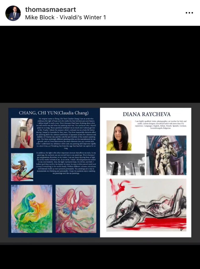 11/12- 31/12/23 CASA DEL ARTE PALMA- Spain 1/12-31/12/23 ANDAKULOVA GALLERY DUBAI 6/12- 10/12/23 ART BASEL MAIAMI WEEK 01/2024 NICOLETA Gallery, Berlin, Germany