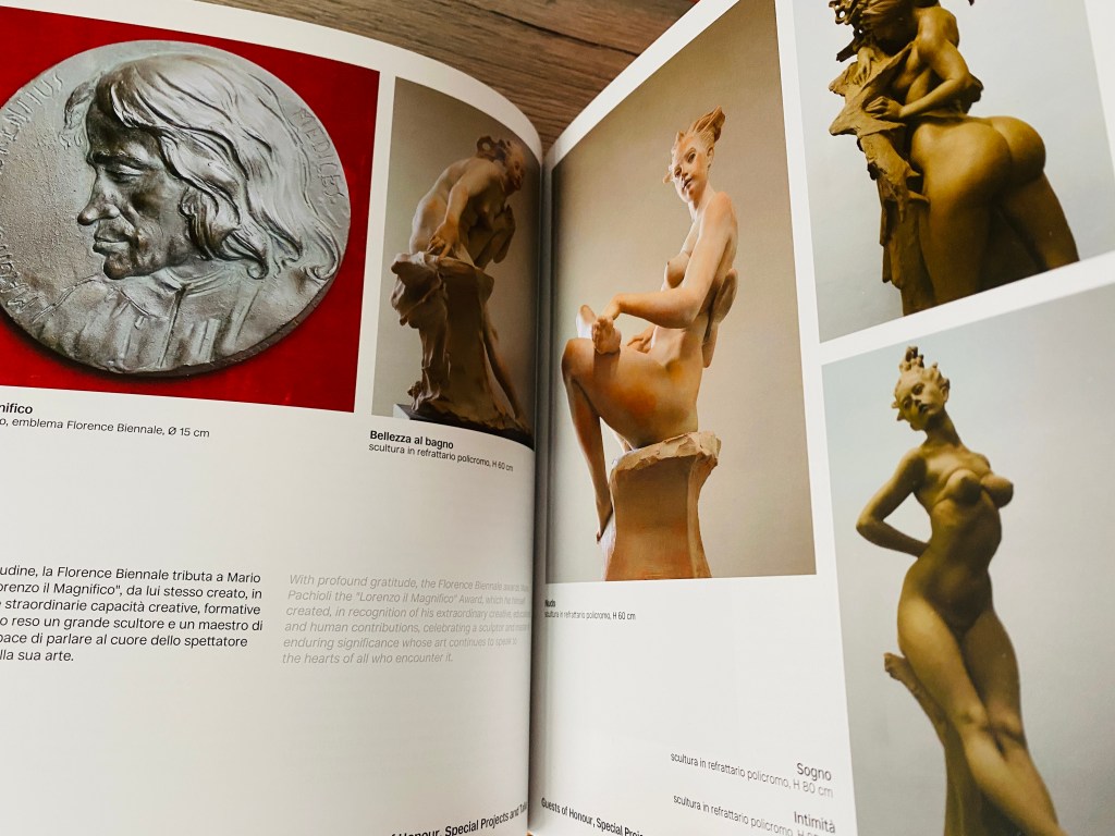 2024- part of the Official Catalogue of the Florence Biennale XV. The catalogue will be distributed in Italy through Messaggerie Libri, Amazon.it, and the most important book fairs (such as those held in Bologna, Turin, Rome, and Frankfurt). Copies of the volume will also be sent to Italian libraries in London, Paris, Berlin, Madrid and other European cities. Furthermore, the Florence Biennale Catalogue will be made available at the bookshops of the Venice Biennale, Triennale di Milano, and Artefiera Bologna as well as in the museums of Padua, Bologna, Florence, Rome, and Verona.