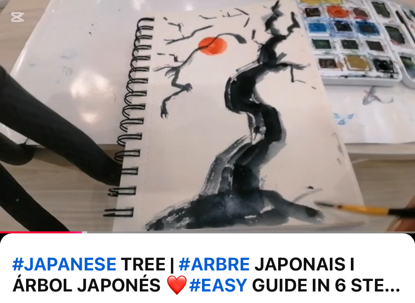 ‘ JAPANESE TREE | #ARBRE JAPONAIS I ÁRBOL JAPONÉS ❤️#EASY GUIDE IN 6 STEPS #watercolor’ in English , French and Spanish.